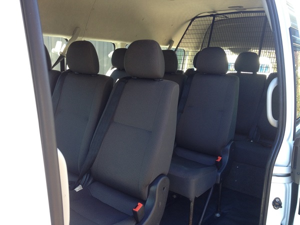 Toyota Hiace minibus – plenty of room – with or without luggage cage (vehicles with a luggage cage are NOT guaranteed and are subject to availability)